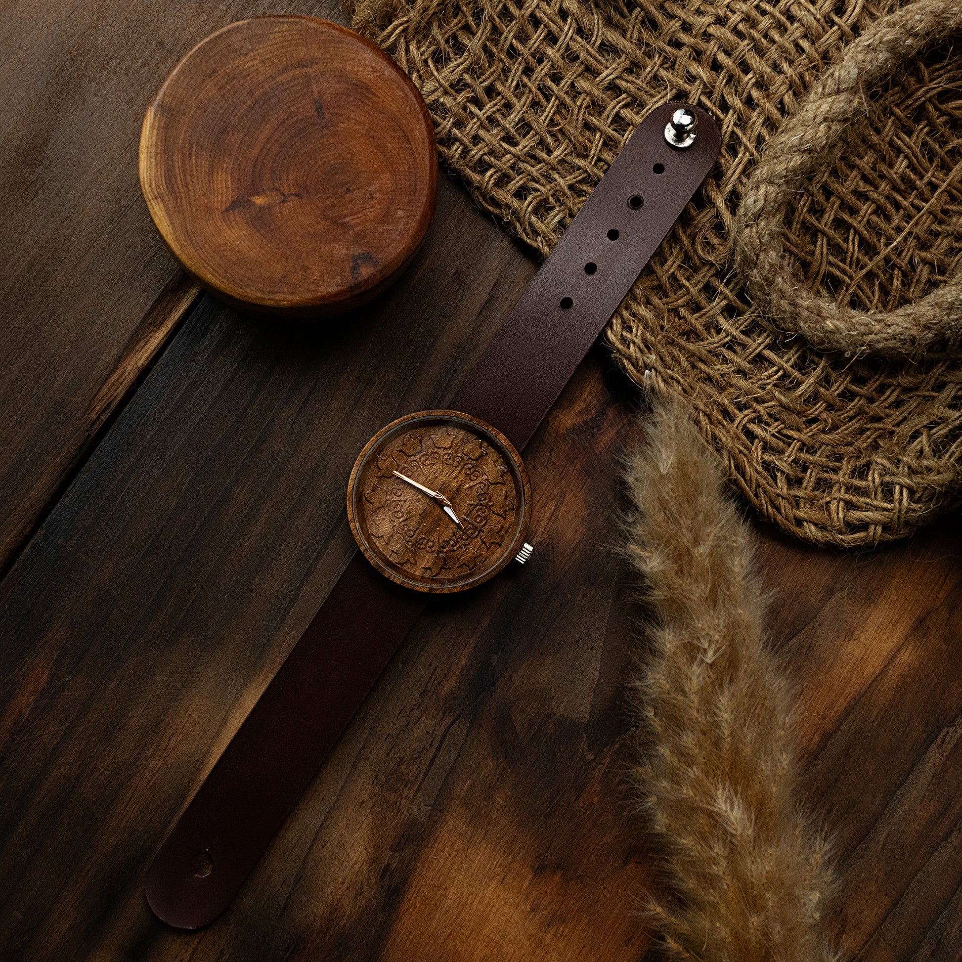 Discover timeless elegance in its purest form with our handcrafted Rosewood Watch. Designed for those who appreciate the beauty of simplicity, this timepiece blends natural materials with refined craftsmanship. The case and dial are meticulously carved from genuine rosewood, each piece unique with its own grain patterns, giving every watch a distinct character. Paired with rich leather straps, it offers comfort, durability, and a classic look that only gets better with age.